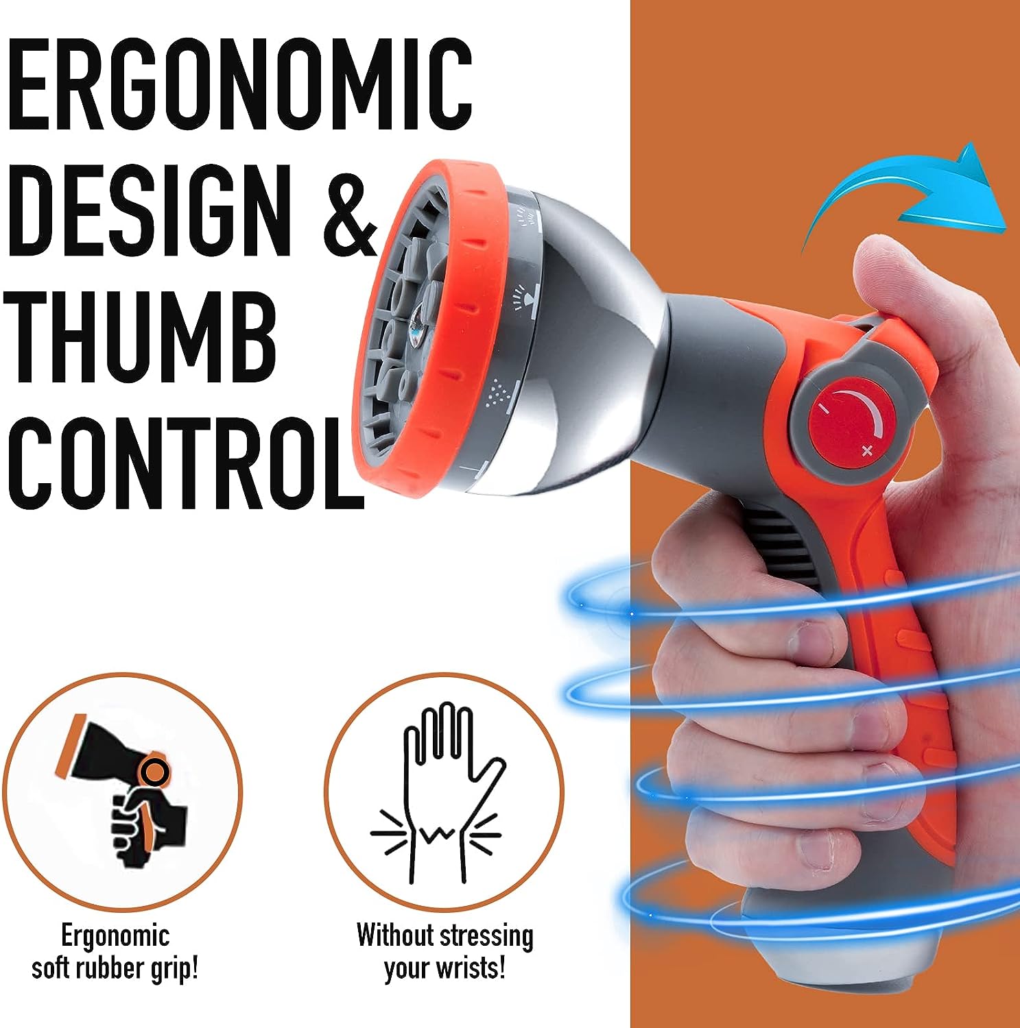 - The soft rubber coating on the hose handle ensures pleasant experience while using our garden spray nozzle. No more pain in the hands.